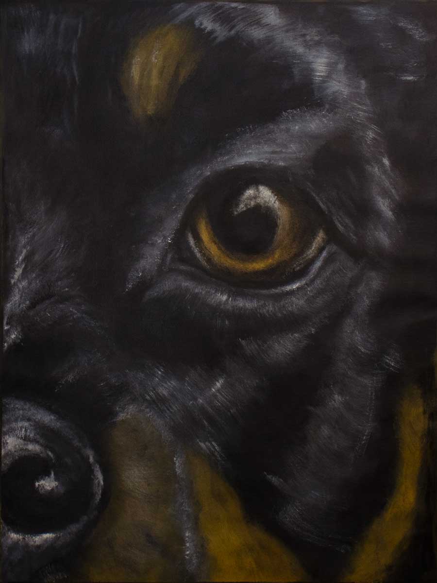 This contemporary animal portrait celebrates the noble character of one of the world’s most devoted companions. The close perspective invites the viewer into a moment of connection — as if the guardian is watching not just the night, but also protecting those it loves.